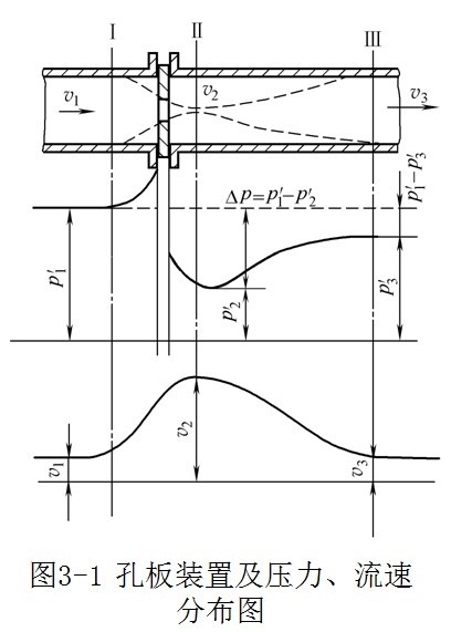要準(zhǔn)確測量出截面Ⅰ、Ⅱ處的壓力有困難,因為產(chǎn)生最低靜壓力p2′的截面Ⅱ的位置隨著流速的不同會改變。因此是在孔板前后的管壁上選擇兩個固定的取壓點(diǎn),來測量流體在節(jié)流裝置前后的壓力變化。因而所測得的壓差與流量之間的關(guān)系,與測壓點(diǎn)及測壓方式的選擇是緊密相關(guān)的。