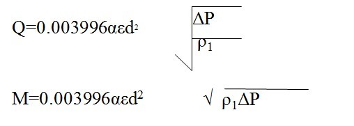 在計(jì)算時(shí),如果把Ao用π/4d2 表示,d為工作溫度下孔板孔口直徑,單位為mm,而ΔP以Mpa為單位,則上述基本流量方程式可換算為實(shí)用流量計(jì)算公式,即: