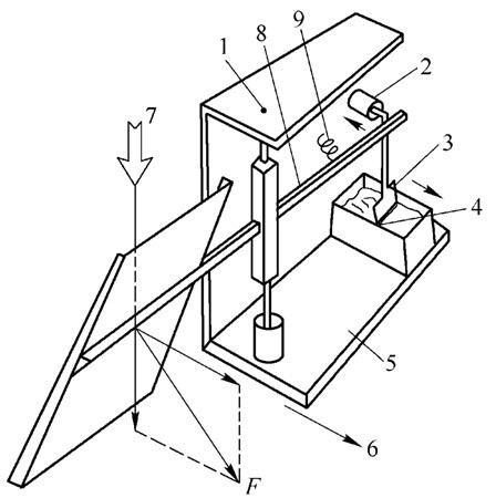 以動(dòng)量原理工作的沖板式流量計(jì),利用粒料從定高度上自由落下時(shí), 流量計(jì) 在檢測(cè)板所產(chǎn)生的沖力以及塊粒在檢測(cè)板上流動(dòng)具有的重力,與被測(cè)材料的瞬時(shí)流量成正比的關(guān)系,通過(guò)測(cè)量檢測(cè)板上所受的力,可測(cè)量出材料的流量。 1-軸心支撐;2-差動(dòng)變壓器;3-阻尼器;
